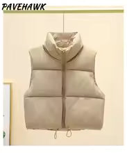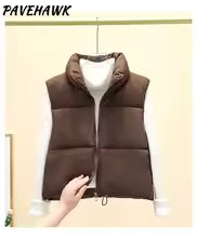 Women Autumn Winter Short Down Vest Stand Collar Warm Casual Elegant Sleeveless Coats Outdoor Quilted Travel Jackets Clothes